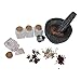 - Includes gorgeous, natural black granite mortar & pestle, 4 small spice jars with cork, and 1 small funnel.