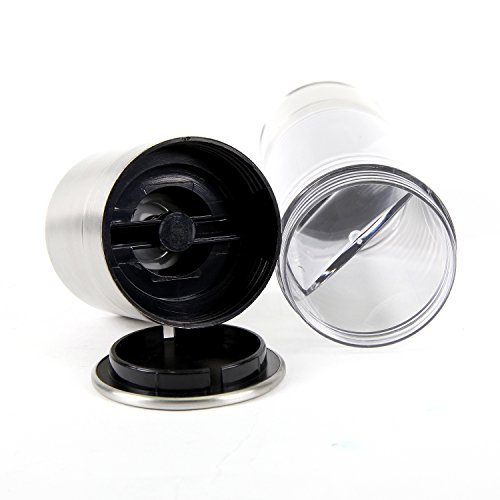 - The center body is made of BPA-free, tough acrylic, while the grinder ends are beautiful stainless steel. Looks great on your countertop or dining room table! No clogging or jamming. Engineered for safety & durability. Adjust your grind. Easy to