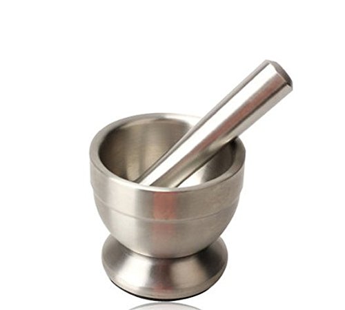 Mortar external diameter:Approx.100mm Mortar inner diameter:Approx.85mm Mortar height:Approx.92mm Pestle length:Approx.140mm Material:Stainless steel Colour:Silver Incorporated: 1x Mortar 1x Pestle