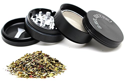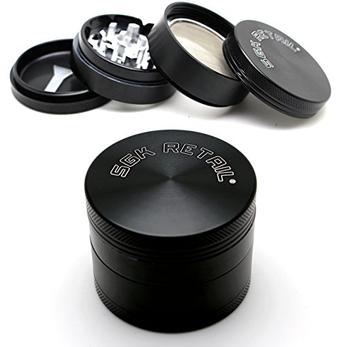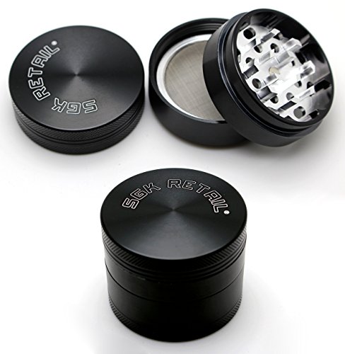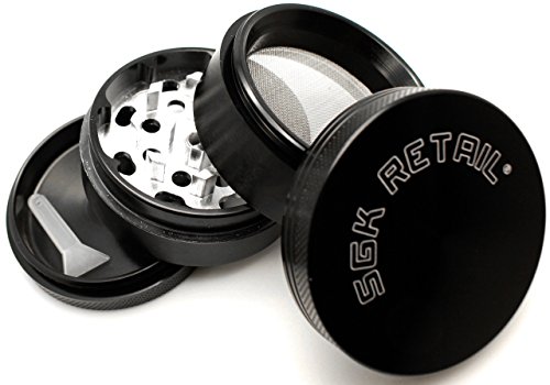 4-piece Weed Grinder By SGK Retail - Premium Anodized Aluminum - Lightweight, Versatile, & Compact - Also an Herb Grinder, Spice Grinder, Tobacco Grinder, & Pollen Catcher 2.2-inch, Large, Black