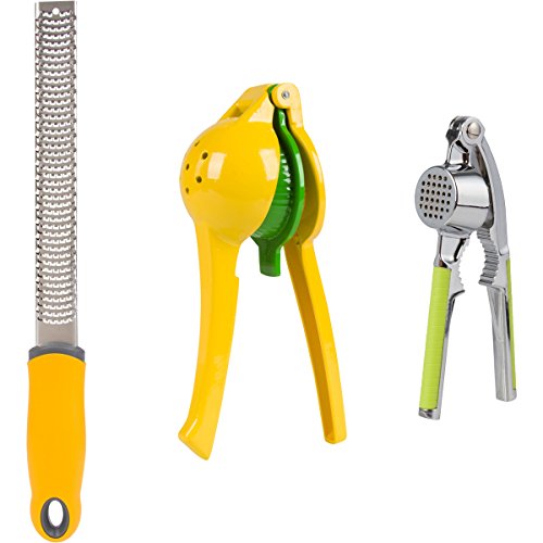 Garlic Tools 5 in 1 utensils set LEMON SQUEEZER / ZESTER / GARLIC PRESS and NUTCRACKER - Premium quality hand held manual lime orange citrus Juicer press w ginger crusher and GRATER Save TIME AND Money WITH THIS BUNDLE. Seeking FOR Equivalent OR THE Same Objects INDIVIDUALLY WILL Value A Good deal Far more AND WILL WASTE A Great deal OF TIME!! THIS KITCHEN UTENSIL Tool Present SET Consists of: one. Manual HAND LEMON, LIME and ORANGE JUICER PRESS - Extract all the juice without having the rind, pulp or seeds. Greatest juicing with minimum effort... Spot citrus pieces with cut side down in juicer and squeeze to juice. two. ZESTER NIFE GRATER- Our zester grater with silicone rubber manage soft-grip that stays razor sharp is designed to extract the very best taste from your food exceptional for cheeses, onions, citrus fruits, lemons, ginger and far more - Includes a snap on safety sleeve to shield your hands although searching through your draws. three. MULTI-Practical GARLIC PRESS / NUTCRACKER One gadget, garlic / ginger presser, crusher, nut or seafood cracker. Try this utensils set just before they are offered out! - Click \"Add to Cart\" over to get yours these days! $18.99 http://ecx.images-amazon.com/images/I/41Gifi1Q1dL._SL160_.jpg