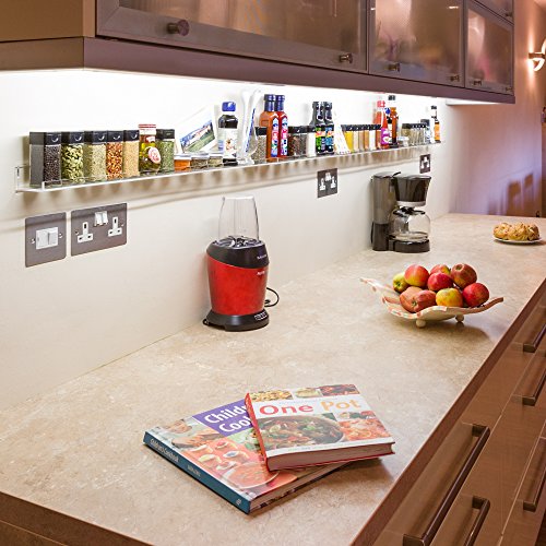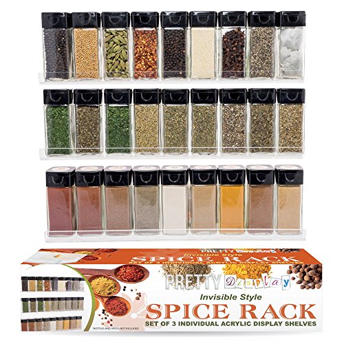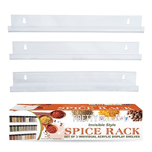 SPICE UP YOUR KITCHEN WITH THE Rather Show INVISIBLE SPICE RACK - Versatile, Fashionable and Practical - Ideal Gift Idea! Produce a Beautiful, Colorful Display of Your Herbs and Spices in your residence as the Ultra Clear Acrylic Shelves match completely with Every single Kitchen Décor. Each and every shelf is Carefully Crafted from a Single Piece of Highest Grade Acrylic for a Sturdy, nevertheless Sleek Layout. Each Set contains Three Personal Wall Mount Shelves so you can organize them tiered, side by side, or in your very own design to suit your kitchen area. Use as several shelves as you want, and merely add more shelves for Additional Storage as your assortment grows. Made to be Useful, each and every 15 inch Shelf holds approximately eight-9 Regular Spice Bottles, and the 2 inch shelf area Effortlessly Fits Most Shop Purchased Brands of Herbs & Spices producing it Practical for you to Restock. The Rather Display Wall Mounted Herb and Spice Rack is Robust and Really Sturdy, Zero-Servicing, Simple to Wipe Clean and will In no way Peel, Rust or Tarnish, so the Rack is ideal for use in Steamy places as shower and bathroom shelves, in bedrooms and closets for make up and equipment, and a lot more Getting as a Present? - The Rather Display Spice Rack is a ideal option as a Gift Thought because it so versatile. The Appealing \"Invisible\" Shelves match all kitchen styles and of course any zero-upkeep kitchen accessory is the greatest choice for all cooking fanatics! Please Note: Herbs, Spices & Bottles are Not integrated. Spice Rack shelf dimension: 15\" x 2.4\" x 1.7\" & Inner shelf width 2.\" NEW on AMAZON, so Acquire NOW at introductory Special Offer Price tag!