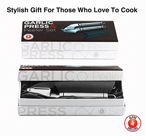 Alpha Grillers Garlic Press and Peeler Set. Stainless Steel Mincer and Silicone Tube Roller