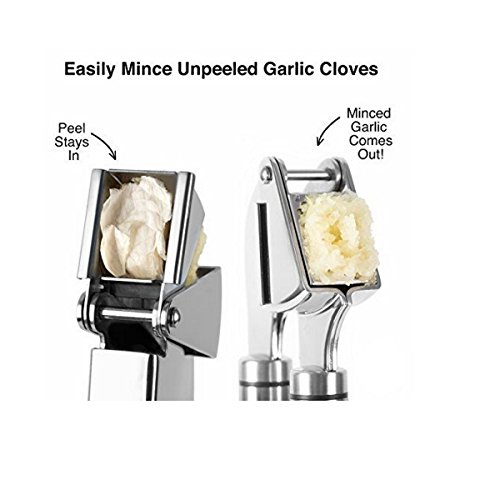 - EASY AND VERY CONVENIENCE FOR THE Garlic Press and Peeler Se--With a beautiful chef-inspired, design, this kitchen tool set will be your favorite addition to your cooking arsenal in years. With its brilliant finish and the always-useful peeler at the ready, you're sure to impress. Better still, it doesn't just end at garlic. Professional chef results with minimum mess. One quick swipe with the cleaning comb end of the blade cover pushes stuborn clinging herbs right off.