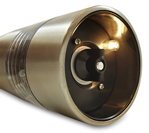 Battery Powered Automatic Electric Pepper Mill, Salt Mill, Elegant Brushed Stainless Steel with Powerful Ceramic Grinding Motor and Adjustable Grinding Coarseness, Push Button Action Rating: