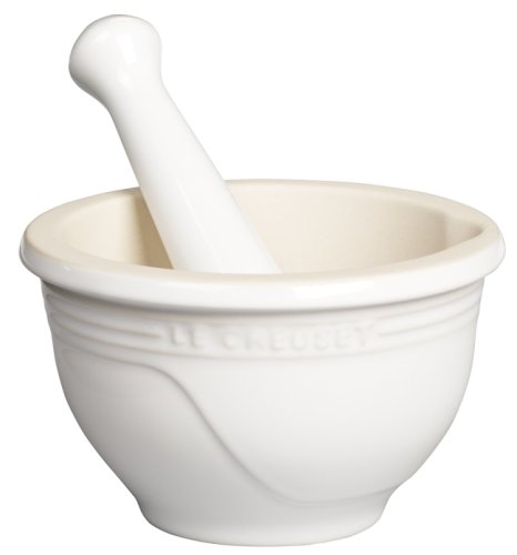 - Mortar and pestle set grinds and crushes herbs, nuts, and spices
