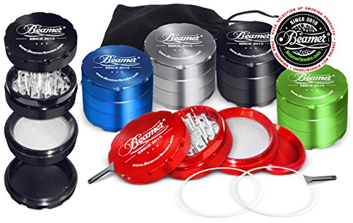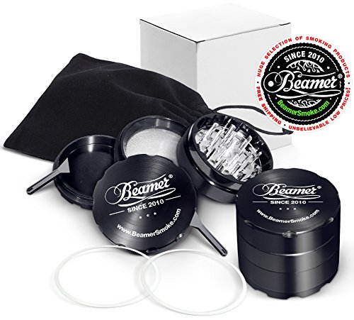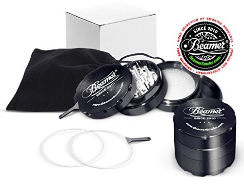 Black Beamer Smoke 62mm 4 Piece Aircraft Grade Aluminum Grinder / Spice Mill w/ Catcher & Neodymium Magnet + 2 O Rings + 2 Scrapers + Travel Bag. For Tobacco, Coffee, Herbs, Spices + Beamer Sticker 5 out of 5 based on 14 ratings. 14 user reviews