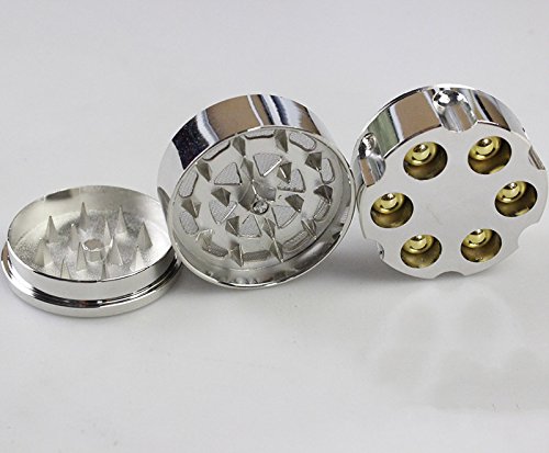 Check out this awesome grinder. Its fantastic looks are not the only thing that set this on apart from the crowd, this grinder functions a best grinding compartment and a massive oversized pollen & storage compartment. Grind your herb effortlessly in seconds to the best texture, producing tedious hand breaking a point of the previous. This herb grinder is shaped like the loaded chamber of a revolver and comes in two polished two tone finishes. Note: This item ships in assorted colors.