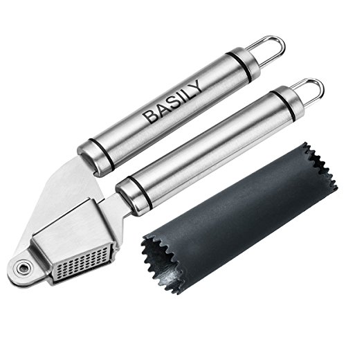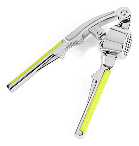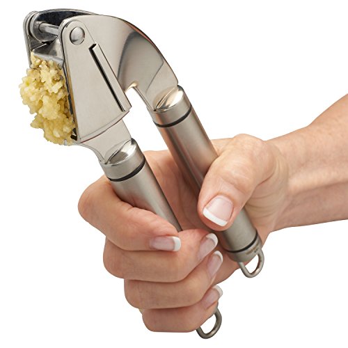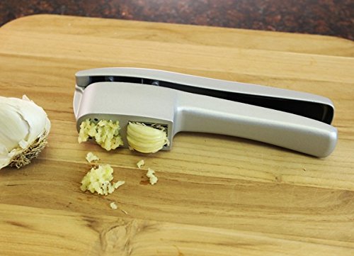 Garlic Lovers & Chefs – Say Hello To Your New Best Friend In The Kitchen! 1. It easily minces garlic in one press (No more sore hands or risk of cutting yourself by using a knife to mince) 2. Large capacity basket (Presses large cloves … even if you leave the skin on)3. Gone are the days of smelly “garlic hands” (Easy to use and easy to clean so you won’t smell like garlic all day!)4. Heavy duty stainless steel construction (BUT only weighs about 9 oz, so really ANYONE can use it)5. Backed by our LIFETIME GUARANTEE! (Order yours now because you literally RISK NOTHING!) This kitchen tool is built using the highest quality materials: solid food grade stainless steel. If you are looking for a kitchen tool that will last a lifetime, this is it. Waste no more time mincing by hand, add delicious, fresh minced garlic to all you meals in seconds. Discover how quickly and easily you can produce you own fresh garlic for cooking, you’ll be soon adding it to everything you prepare. Home made garlic bread, savory sauces, mouthwatering pasta dishes, oven roast vegetables and the infamous garlic mashed potatoes. The options are only limited by your creativity. America agrees: with 94% 5 stars reviews, you have found the best garlic press on Amazon. Don’t settle for anything less than premium quality. Click the ‘Add To Cart’button now to order your set today. Looking for a great gift to give the chef or cook in your life, add a second one to your cart. This tool will be sure to please the most discriminating chef and is a great addition to anyone’s kitchen collection.