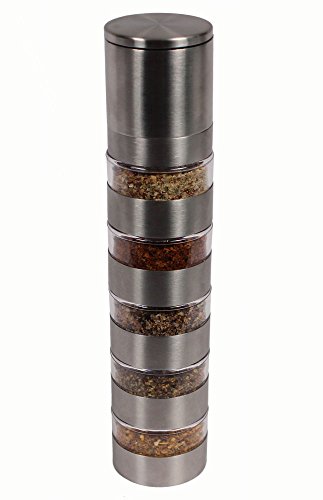New – Deluxe 6 Jar Stainless Steel Salt and Pepper Grinder Mill Set – Adjustable Ceramic Grinding Mechanism – Clear Acrylic Body