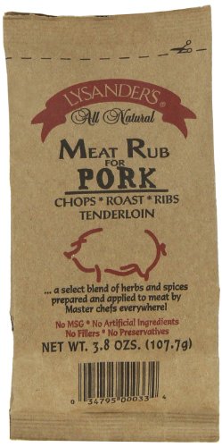 Lysander’s® Meat Rub For Pork.All natural.Chops* roast* ribs.Tenderloin….a select blend of herbs and spices prepared and applied to meat by master chefs everywhere!No MSG*.No artificial ingredients.No fillers*.No preservatives.