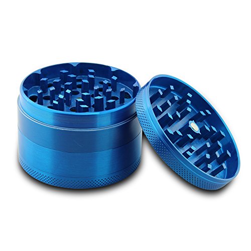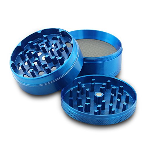 DCOU Alloy Pollen Tobacco Grinder / Spice Grinder / Herb Grinder / Weed Grinder, Grinder Sifter, with Magnetic Cover, 4 Pieces 2.42 Inches (Blue)