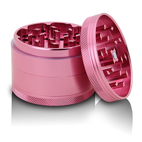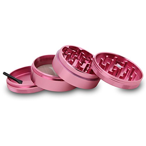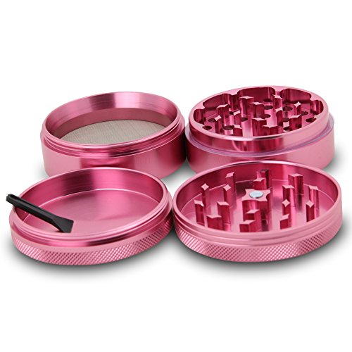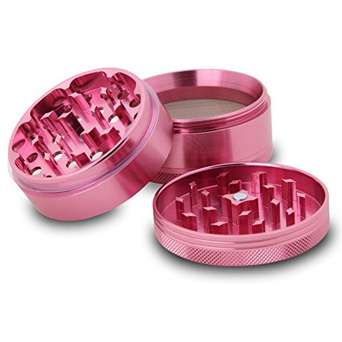 DCOU Large Aluminum Pollen Tobacco Grinder / Spice Grinder / Herb Grinder / Weed Grinder, with Sifter,with Magnetic Cover, 4 Piece 2.5 Inches (Pink)