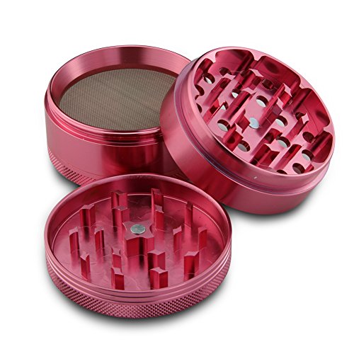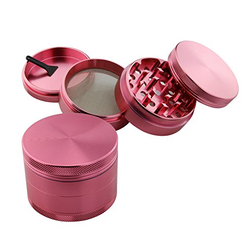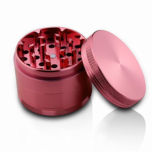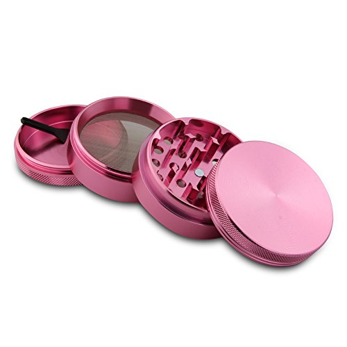 DCOU Tobacco Spice Herb Pollen Plant Weed Grinder 4 Piece Aluminum 55 mm Diameter (2.2″) (Pink)