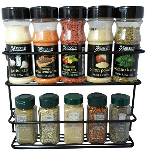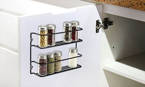 Need spice racks to free of charge up and organize counter, cabinet, and drawer area for messy spice jars? Require resilient steel construction with protective PE coating spice racks? Need stylish black series shade spice racks? Restricted height room on wall and cabinet to hang spice racks? This two tiers wall mountable spice rack is the options, and the measurement is 8\" Tall x eleven-two/five\" Wide x 2-three/four\" Deep about. All mounting hardware are integrated. Spice jars are not included.