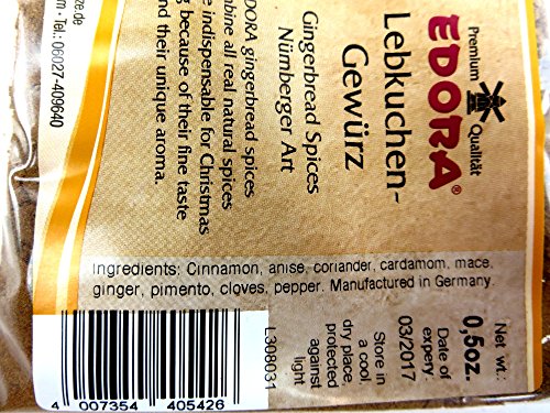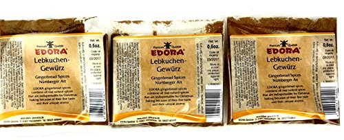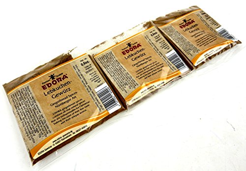 • Includes three 0.5 oz packets of Edora Lebkuchengewürz (Gingerbread Spice)