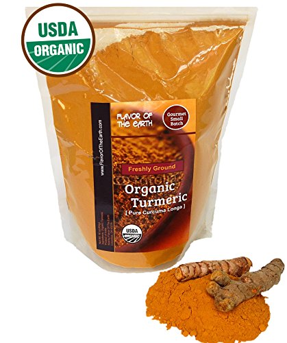 Flavor Of The Earth Organic Turmeric (Curcumin) Powder 1lb - Ultra Pure Freshly Ground and Immediately Packed in our Re-sealable Flavor Pouch