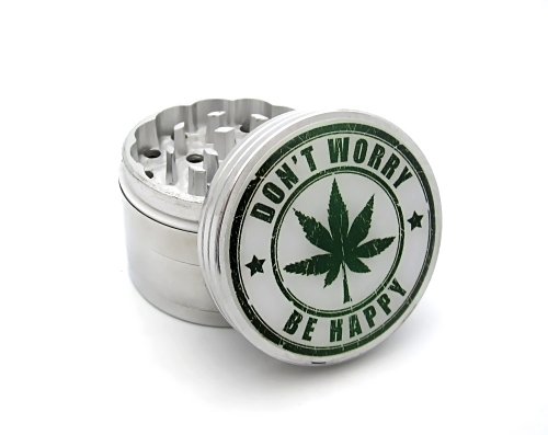 https://www.spicegrinder.biz/four-piece-dont-worry-be-happy-marijuana-logo-herb-spice-or-tobacco-pollen-aluminum-grinder/