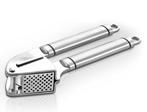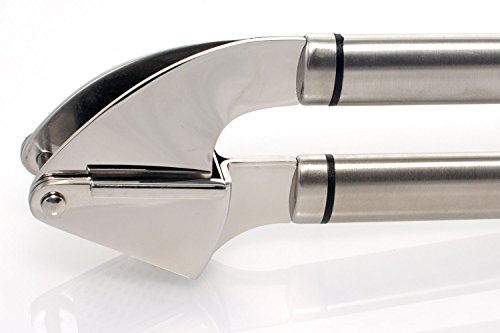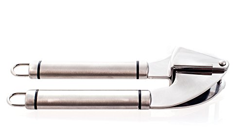 - 2. REINFORCED HINGE. Made for the PROFESSIONAL. Heavy duty hinge, catering grade stainless steel construction and ergonomic design makes this a once in a lifetime purchase. This garlic press is designed for professional, every day use and is now available to the public.