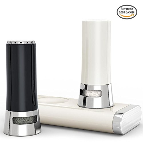 - KEEPS SPICE FRESH & SEALED - Shakers automatically close when placed onto the base, keeping the spice and salt sealed for freshness.