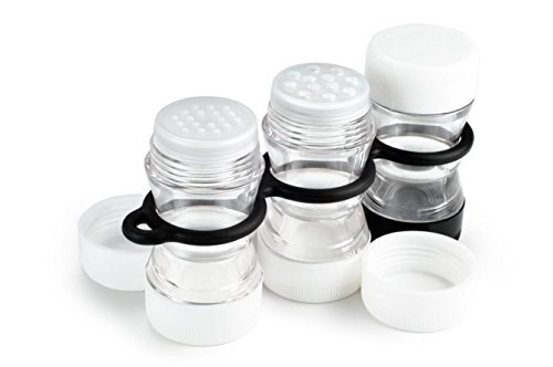 - Waterproof Salt+Pepper Shaker and 2 Universal spicers hold six different spices in individual compartments