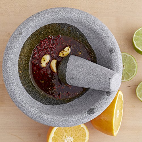 \"Spice up your daily life/Dale sabor a tu vida\" with our unique Aaron Sanchez cookware line. Let this award winning chef deliver Mexican cuisine correct to your kitchen with the support of his inexpensive yet authentic products. Produced of natural granite, this jumbo molcajete is great for getting ready your favourite salsa and guacamole recipes and also utilised to crush and grind complete spices. The excess weight of the stone supplies stability, while the smooth interior provides an best grinding surface. This classic and rustic piece gives an authentic appear to your kitchen and countertop.