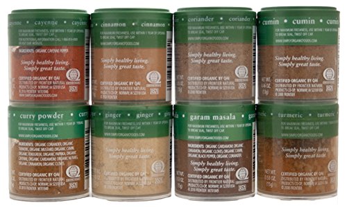 This Indian spice kit contains eight of the most typically used Indian spices- cayenne, cumin, cinnamon, coriander, curry powder, garam masala, ginger, and turmeric. Tends to make a fantastic gift for the cooking enthusiast or for an individual just starting out in the kitchen. All spices are USDA natural from Simply Organic.