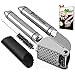 iPerfect Kitchen Stainless Steel Garlic Press, Crusher, Mincer - Including Silicone Tube Peeler, Cleaning Brush & Recipes Ebook