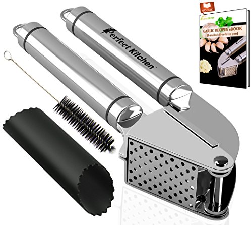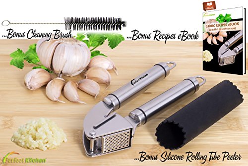 - ✔ THE GARLIC PRESS WITH A 100% SATISFACTION LIFETIME MONEY BACK GUARANTEE - We are so confident you're going to love your iPerfect Kitchen Premium Garlic Press BUNDLE comes with FREE a Peeler Tube from tough FDA approved silicone + FREE Cleaning Brush + Garlic Recipes Ebook + Home Chief_Kitchen Management Ebook - Limited Stock!
