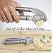 - ✔ EASY-TO-USE INGENIOUS DESIGN - Quickly and easily minces garlic with no need to peel the clove! Crush even unpeeled/whole cloves in seconds with minimal effort! Just insert the clove into the well and squeeze the handle. The peel stays in the press while the garlic is extracted from it. Effortlessly make beautifully minced garlic with our easy to squeeze garlic press - The press is built to last. The best part is that your hands won't smell like garlic anymore! - DISHWASHER SAFE & EASY TO CLEAN - Just rinse under water or run through the dishwasher. Fits easily into any kitchen drawer!