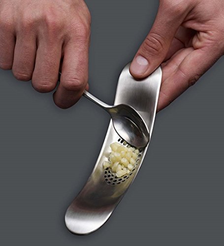 By making use of downward stress and a \'rocking\' motion, this stylish instrument breaks up garlic cloves quickly and very easily, forcing the pieces up via the mesh of holes in its base. Joseph Joseph The crushed pieces are then held in the curved layout, making it possible for them to be spooned or scraped conveniently into a pan or bowl. Further cloves can also be crushed at this stage prior to emptying. Rocker is straightforward to clean below operating water but is also dishwasher secure. As it is manufactured from brushed, 18/8 stainless steel, the unit can be rinsed underneath running water, soon after use, and employed to gently rub the hands and fingers to decrease any garlic odor (stainless steel is imagined to eliminate the strong odors left from managing garlic).
