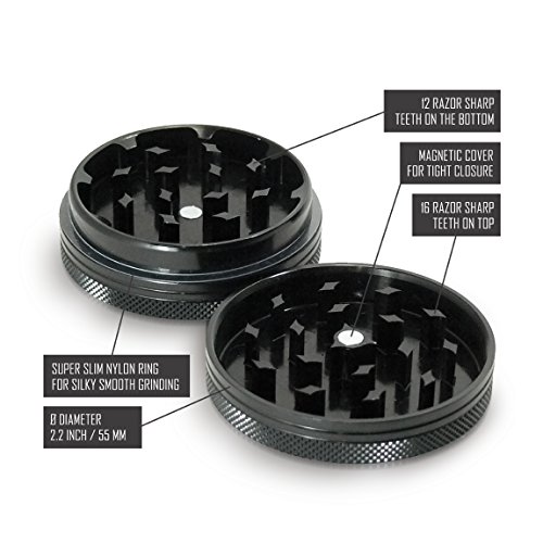 Superior components Aerospace Grade Aluminum Alloy with Super Slim / Non-Stick Nylon O-Ring for Silky Smooth Grinding - the a hundred% CNC Machined pieces match completely collectively and Nylon Ring prevents metal-to-metal get in touch with in the course of the grinding action, stopping herb residue build up and sticking. Our Quality Ensure Our merchandise are meticulously tested to guarantee you acquire the greatest good quality feasible. We stand behind each solution we sell with our industry-major Masterdam 100% Fulfillment Guarantee. The Sharpest Teeth on Any Grinder Frequently imitated, never ever duplicated, our unique \"Lion\'s Tooth\" shape curved diamond teeth lower and fluff the herb into small pieces making perfect for vaporization or rolling. Our grinders boost the surface spot of your herb so you get a more even smoke or vaporization and in turn have significantly less wasted merchandise. It\'s also a great deal less complicated on your fingers. The Electrical power of Attraction Our grinders have a Effective Neodymium magnetic lid and Non-Stick Nylon O-Ring, which keeps it freely rotating for an simple grind whilst retaining all parts with each other, so you do not get rid of any of your precious cargo, even when on the move. Undercover Brother (or Sister!) Discreetly Packaged in a plain cardboard outer box with no reference to the contents to protect your innocence, it\'s no one else\'s company correct?