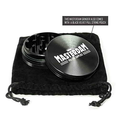 MASTERDAM MasterGrind HERB Grinder 2 Piece - Standard (2.2 inch - 55mm) - Black - Shield Series - Premium Aluminum Grinder for Herb, Spices and Tobacco - Includes Carrying Bag