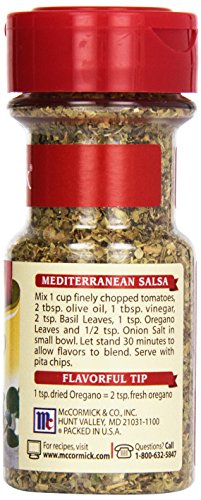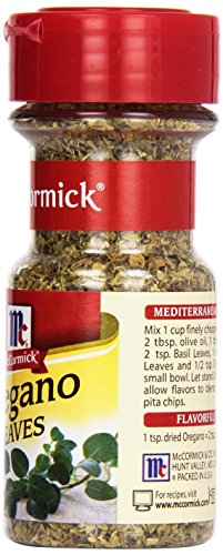 McCormick Oregano Leaves carry daring Mediterranean taste proper to your kitchen. This staple is assured for superior freshness and features premium oregano. Sprinkle over basic dishes like Greek salads and grilled chicken for a boost of flavor. Or include oregano leaves to your homemade pizza, minestrone soup and sautéed vegetables for a minor zest that is out of this planet.