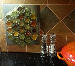 - Stainless steel wall plate for hanging magnetic spice containers. Jars NOT included!