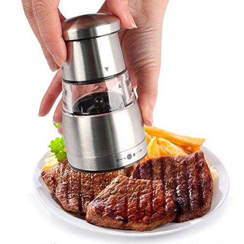 Specifications: Variety: Manual Material: Stainless steel, Acrylic, Ceramic, ABS Diameter: 6.5cm Height: 11.5cm Package deal Size: 13*7*7cm Net excess weight: 172g. How to Use: one: Filling. Turn the lid counter-clockwise to open the mill, fill salt grains, peppercorns or other spices you want to grind, and then close the lid by turning it clockwise. 2: Adjusting. Grip entire body of the mill with your left hand, and then flip the base plate of the mill with your correct hand to set grind fineness, clockwise for finer and counter-clockwise for coarser. three: Grinding. Following setting the grind fineness, grip physique of the mill with your right hand and twist it clockwise to grind. Shake the mill to include ground seasonings to your foods although grinding. Functions AND Positive aspects: Modern and Attractive designIt is a great hunting pepper mill. The stainless steel and ceramic give it a extremely modern and modern day appear which matches with the silver and acrylic on your dinner table. Its ergonomic layout ensures that your spice will get ground to perfection with the least hard work on your component.