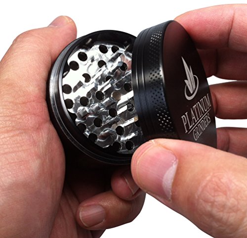 All Platinum Grinders are developed by making use of the most recent CNC technologies and high grade aluminum components that are are developed to final! Our grinders are anodized (not painted) which implies NO flaking or pealing. Strong neodymium magnets keeps your herbs in the grinder and prevents spillage and odor containment. A thin Poly O-Ring minimizes friction, and accommodates a extremely smooth milling expertise. Sharp diamond shaped cutting teeth will shred just about anything at all you spot in the grinder, and the SS mesh screen filters finely ground pollen into the catcher compartment under.