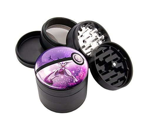 Pokemon Pokeball #6 Art – Custom Premium Spice Tobacco Herb Weed Grinder – Four Piece with Pollen Catcher – (2.25″, Black)