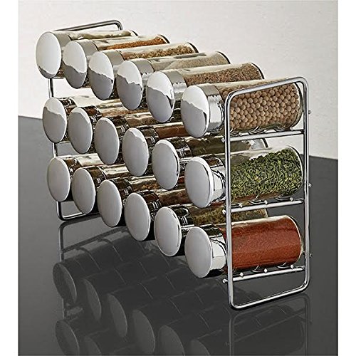 Polder /Paksh Sturdy Spice Rack Stand Storage Organizer With 18 Spice Jars Bottles, Chrome