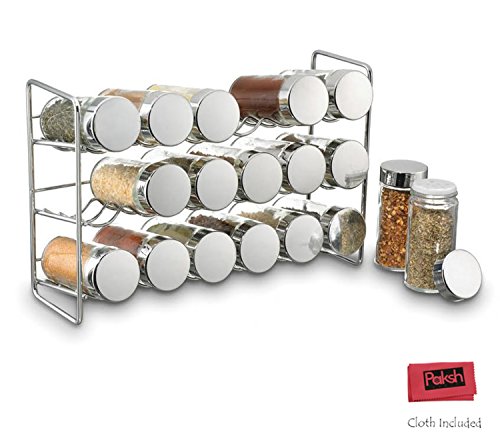 - Store your spice collection on our attractive chrome 18-bottle spice rack from polder, also including a paksh novelty wonder cloth as a bonus