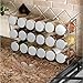 - Rack comes with 18 clear glass jars with chrome screw-on lids and plastic shaker tops