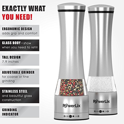 Energy OF POWERLIX PEPPER MILL Spice up your kitchen with Powerlix Salt N Pepper Mill set. Stainless steel grinding mill is a excellent addition to your kitchen. It is big, with a capacity of 250 ml, you can get a lot of spice in there. No far more struggling with small spice mills that are hard to grip, the tall style of Powerlix spice mill is easy to hold. You get a robust grip to use the mill and grind your spice correctly. Functions AND Advantages: Modern and Eye-catching layout- It is a excellent searching pepper mill. The stainless steel and glass give it a quite modern and contemporary appear which matches with the silver and crystal on your dinner table. Its ergonomic design and style assures that your spice will get ground to perfection with the least effort on your portion. Excellent Top quality and Durability- Powerlix Spice Grinder is produced to last. It is heavy duty grinder that can consider a whole lot of work. The grinding mechanism is manufactured of premium grade ceramic which will give you many many years of difficulties free services. This salt and pepper mill is manufactured for tough work. Its build high quality tends to make it worthy of a specialist kitchen. Preserve your spices fresh and moisture cost-free- Powerlix mill keeps all moisture away from your salt and spices. You get totally free flowing spices each and every time. Its large capacity holds a great deal of spices so you do not have to refill it really often. Fantastic looks, layout and ease of use is what helps make Powerlix spice mill set wonderful addition to your kitchen resources. LIFETIME Assure! We\'re so certain you will adore the PowerLix spice mill that we offer you a a hundred% Funds Back Assure. If for ANY Purpose you will not like this item, we\'ll refund every penny with no hassle. Hurry and Click \"Include to Cart\" even though supplies last!
