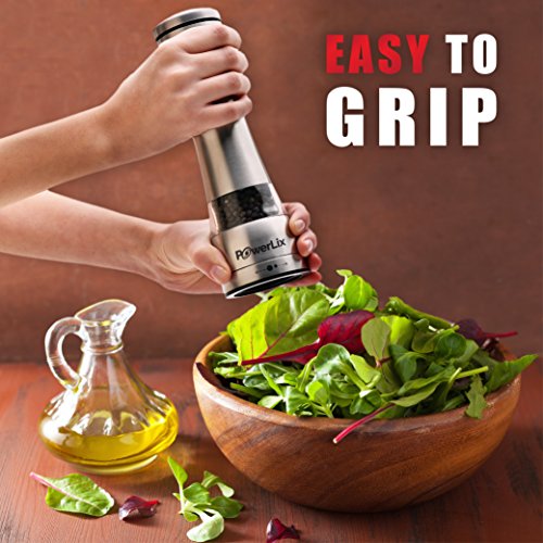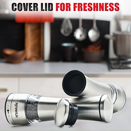 - ATTRACTIVE AND HANDY: Powerlix spice shaker is a very stylish looking set of spice mills that would look good anywhere. Its stainless steel and glass looks make it a perfect match for beautiful silver & crystal or cut glass dinner service. Its ergonomic design make it extremely easy to use. You need very little effort to get ground spice for your culinary delights. Tall design makes it easy to hold while grinding spices. No need to struggle trying to get a good grip on a small grinder.