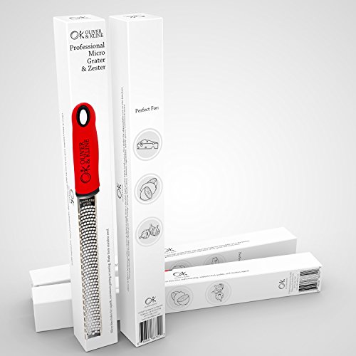 Spice Graters Professional Micro Grater & Zester - Best For Lemon, Cheese, Spices, Garlic And Other Fruits & Vegetables - Made With Stainless Steel - Easy To Clean - Enjoy Consistent, Superb Grating & Zesting! Would you like a pure, ideal lime zest with no work? Or how about grating Parmesan or Romano cheese for your Caesar salads and pastas? Chocolate, nutmeg, cinnamon? Fine. You name it, this expert micro-grater & zester by Oliver & Kline has you covered. What utilized to consider you numerous minutes, even hours using a potato peeler or meals processor to zest or grate now will get you seconds. And no pith, both! Simple to use... in truth you can do your grating correct over the pot if your recipe calls for it. Light-weight so the zester is easy to take care of, but produced with stainless steel so it\'ll final practically forever. A snap to clean, also. Just run a bit of water above it, tap it on the side of your sink, then stick it in the dishwasher. The design is eloquent enough that you can bring this out at parties and sit it on the plate or the lip of a bowl - and let your guests grate just the exact quantity of bittersweet chocolate, cheese or what ever on the celebration snacks and foods. You are going to love this specially in the course of Christmas if you break out the eggnog. Alternatively of that pre-grated nutmeg you get from stores... dust this years\' eggnog with fresh nutmeg and observe your visitors marvel at the authentic taste. No kitchen is complete without having a micro-grater & zester. Now get both in a single helpful tool when you purchase from Oliver & Kline. $22.95 http://ecx.images-amazon.com/images/I/41JdsQi-MxL._SL160_.jpg