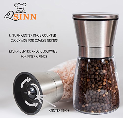 ![Q's Inn Salt and Pepper Grinder Set - [Lifetime Warranty] Brushed Stainless Steel Salt & Pepper Mill with Glass Bottle - Adjustable Ceramic Rotor - Best 3.5in Shakers Pair for Fun and Healthy Cooking](http://ecx.images-amazon.com/images/I/51dLXn5QgHL._SL160_.jpg)