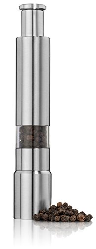 - The beautifully-finished grinders looks great on tables or near the stovetop. Thumb operated make it easy to use with a single hand.