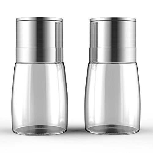 Salt and Pepper Grinder Set – Premium Stainless Steel Manual Mills – Adjustable Coarseness, Brushed & Elegant – Best Glass Shakers, Containers and Dispenser – Refillable Holder & Organizer Combo Gift