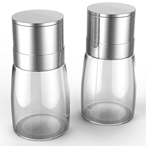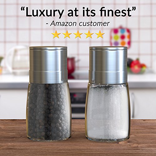Salt and Pepper Grinder Set - Premium Stainless Steel Manual Mills - Adjustable Coarseness, Brushed & Elegant - Best Glass Shakers, Containers and Dispenser - Refillable Holder & Organizer Combo Gift