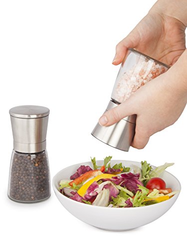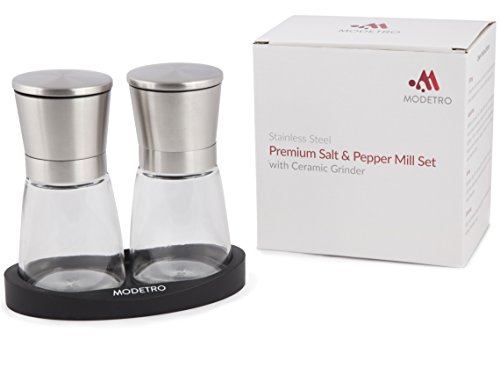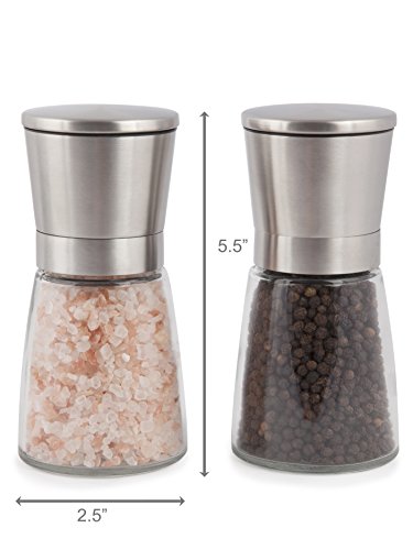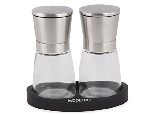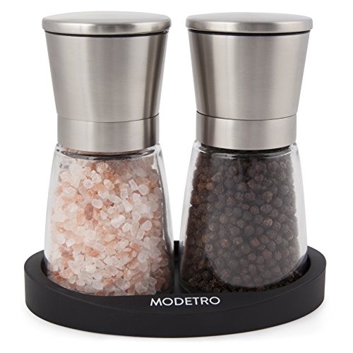 Stylish Brush Stainless Steel & Glass Style Featuring a generous 8oz (3/4 cup) glass body producing refills less frequent & a top opening stainless steel head, the Modetro Salt & Pepper mill set is both elegant and useful. As the grinder itself is on the top of the mill you also can ensure that your salt & pepper go specifically in which you want it and not create a mess on your table. The sealed lid also lowers moisture and other undesired particles getting into your salt & pepper mill. Ceramic Burr Grinder Each and every of our grinders attributes a ceramic burr grinder, ceramic grinders are often deemed superior to stainless steel as they are tougher sporting, productive and can perform far more successfully in moist situations. It also indicates that using the grinder is effortless to use and with its adjustable coarseness settings you can constantly grind your salt & peppercorns specifically as you like it. Item Dimensions Each and every mill is 5.5\" tall with the glass reservoir being able to hold approximately 8oz (three/4 cup) of your favourite salt or peppercorns. What the set includes Every single set consists of 2 identical mills & a non-stick silicon tray, please note salt & pepper are NOT incorporated. Fulfillment Policy Your fulfillment is our highest priority, if for any cause you are not completely happy with your new salt & pepper mill set please do reach out to us. Our services is pleasant, problem free and we are committed to resolving any issues to your satisfaction.