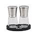Salt and Pepper Grinder Set with Silicon Stand - Premium Pair of Salt & Peppercorn Mills with Adjustable Ceramic Coarseness - Brushed Stainless Steel and Glass Body Shakers